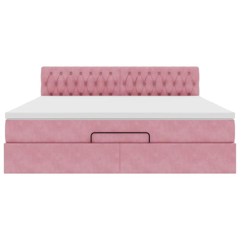 Османска легло с матрак и LED, розово, 160x200 см, кадифе