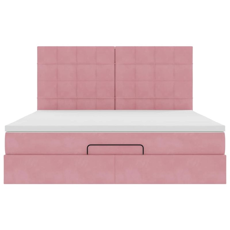 Начало Мебели Легла и аксесоари Легла и рамки за легла Османска легло с матраци, розово, 160x200 см, кадифе