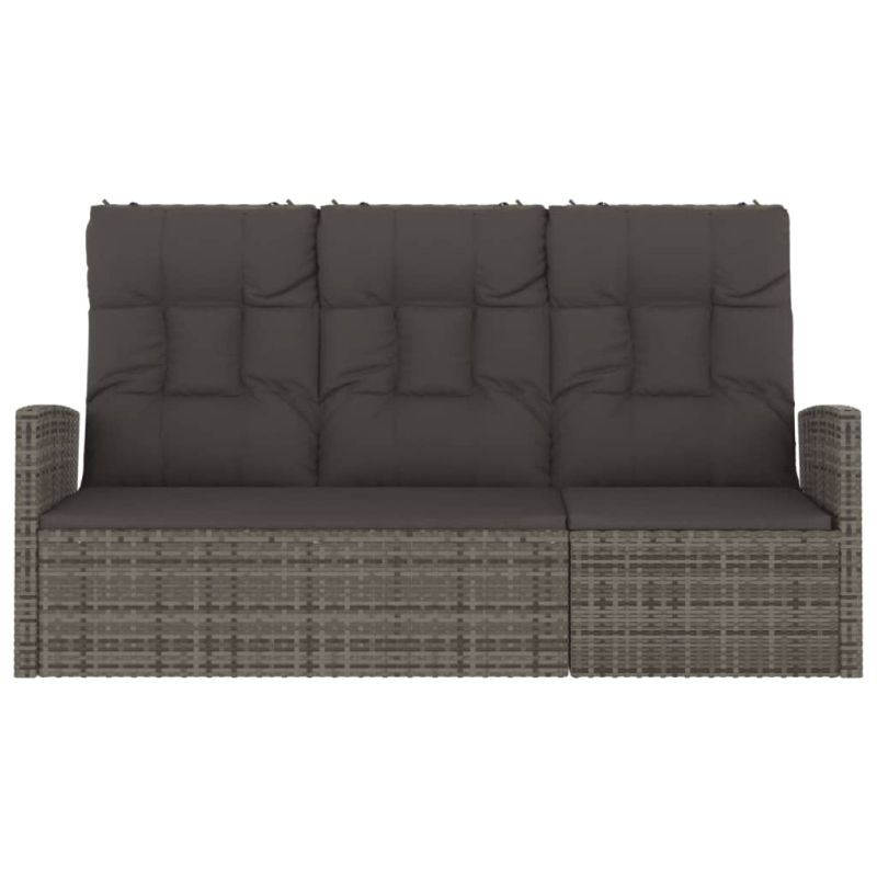 Наклоняема градинска пейка с възглавници сива 173 см полиратан
