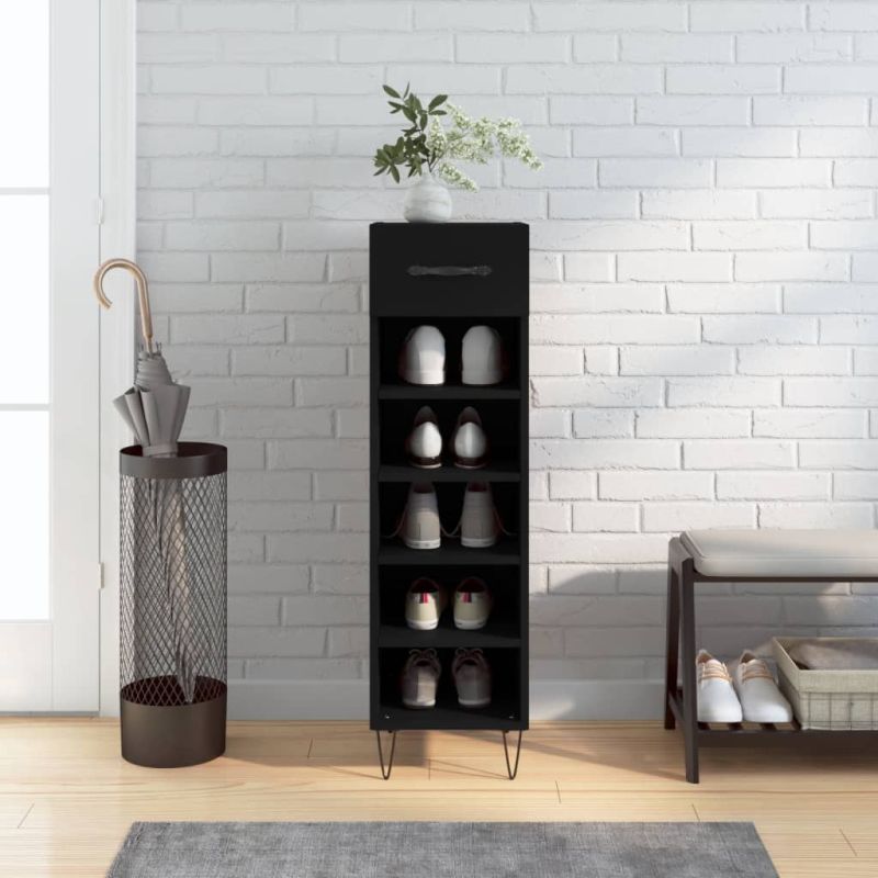 Шкаф за обувки, черен, 30x35x105 см, инженерно дърво