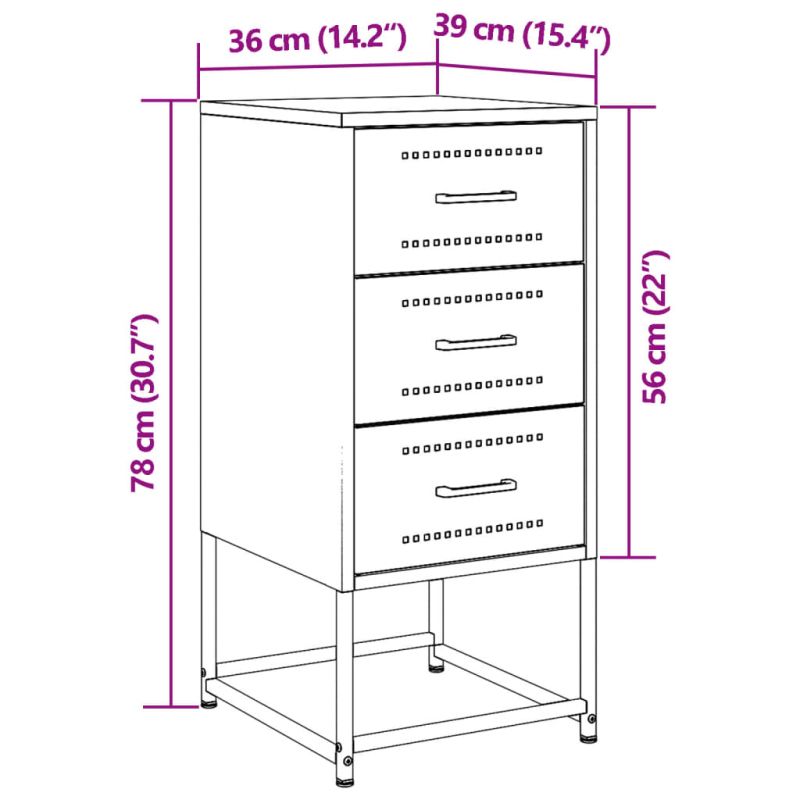 Тези нощни шкафчета с индустриален стил са непреходно допълнение към вашия интериорен декор. Здрава и стабилна рамка: Стоманата е здрава, стабилна и издръжлива, което я прави идеален избор за широк спектър от приложения – от производството на мебели до строителството.Достатъчно място за съхранение: Нощното шкафче осигурява достатъчно място за съхранение, за да съхранявате вашите различни ежедневни неща добре организирани и леснодостъпни.Лесно почистване: Стоманеното нощно шкафче е устойчиво на влага и се почиства лесно с влажна кърпа.Мултифункционален дизайн: Този шкаф е идеален да служи като нощно шкафче до леглото ви, странична масичка до дивана във всекидневната или като допълнителен шкаф в кабинета.Декоративна функция: Можете също така да поставите любимите си снимки, декорации или цветя върху нощната масичка, за да обогатите живота си. Внимание:За да предотвратите преобръщане, този продукт трябва да се използва с предоставеното устройство за закрепване на стена.