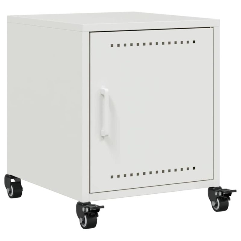 Тези нощни шкафчета със стилен дизайн са непреходно допълнение към вашия интериорен декор. Стабилен материал: Рамката на нощното шкафче е изработена от студеновалцувана стомана. Студеновалцуваната стомана е вид нисковъглеродна стомана, произведена по метода на "студено валцуване" и обработена при близки до нормалните стайни температури. Студеновалцуваната стомана има по-гладка повърхност, по-голяма здравина и по-висока точност.Достатъчно място за съхранение: Това шкафче предлага удобно място за съхранение за вашите списания, книги, дистанционни управления и други дребни предмети, добре организирани и достъпни.Лесна за поддръжка: Масата се почиства лесно с влажна кърпа и изисква по-малко поддръжка.Лесно преместване: Тази крайна маса има 4 колела което позволява гъвкаво движение и стабилно паркиране по всяко време.Практична дръжка: Нощното шкафче се предлага с дръжка, която улеснява отварянето и затварянето на шкафа, като същевременно добавя допълнителна красота.