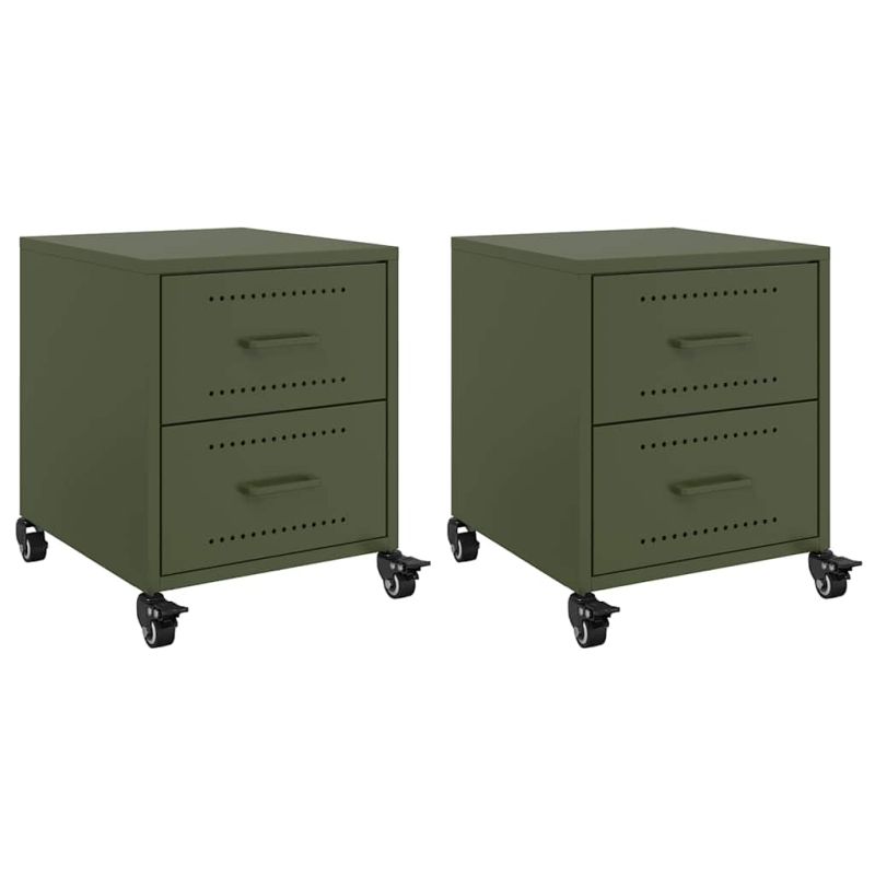Нощни шкафчета 2 бр маслиненозелени 36x39x43,5 см стомана