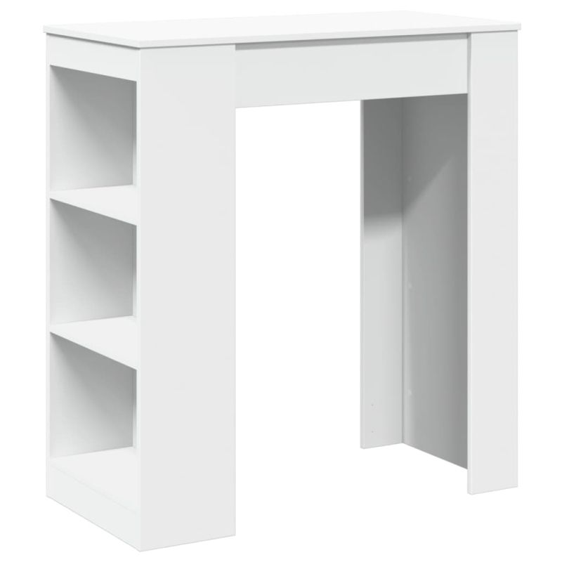 Бар маса с рафтове, бяла, 95x47x103,5 см, инженерно дърво