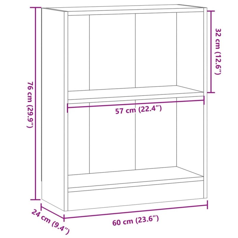 Библиотека, дъб артизан, 60x24x76 см, инженерно дърво