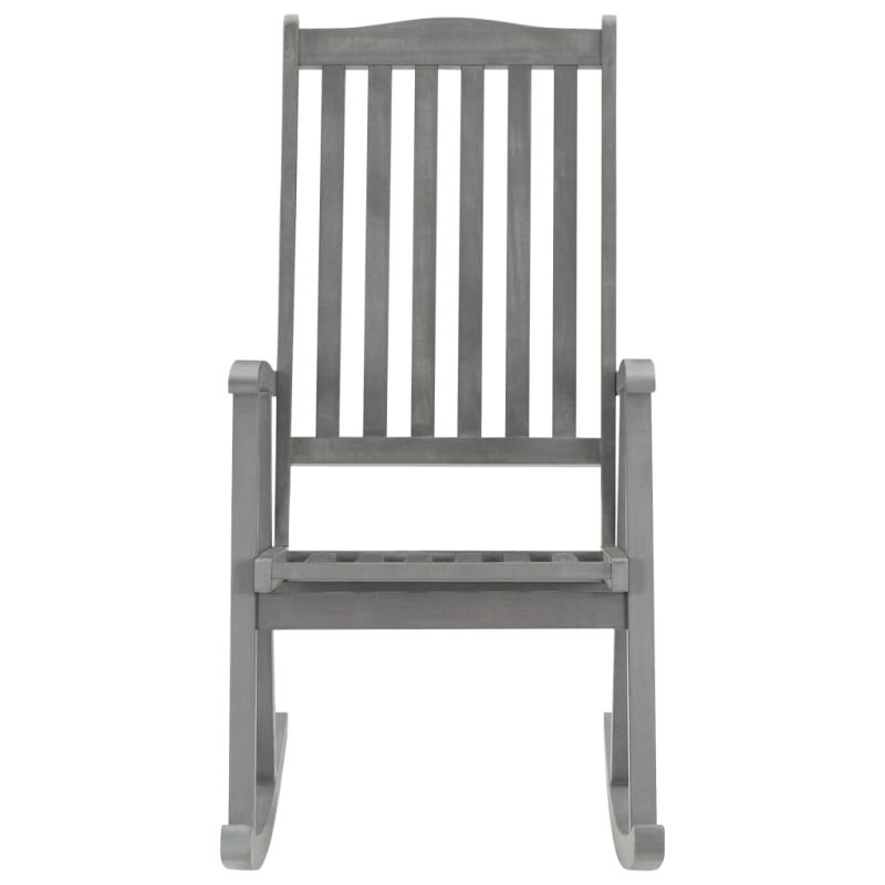 Люлеещ се стол с възглавници, сив, акациево дърво масив