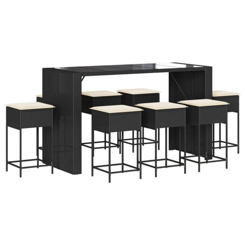 Този модерен градински бар комплект, съчетаващ както стил, така и функционалност, със сигурност е предназначен да бъде центърът на вашата градина, вътрешен двор и всяко друго жилищно пространство. Издръжлив материал: PE ратан, известен също като полиратан, е здрав синтетичен материал с малко необходима поддръжка, който прилича на естествен ратан. Той е лек, лесен за почистване и често се използва за външни мебели поради своята издръжливост и устойчивост на атмосферни влияния.Удобна седалка: Тази мебел за открито, снабдена с плътно подплатени възглавници, предлага удобство при сядане.Калъф, който може да се сваля и може да се пере: Тези възглавници за седалки имат подвижни калъфи за лесно пране и поддръжка.Стъклен плот: Плотът на външната маса е изработен от здраво и издръжливо закалено стъкло, което улеснява почистването с влажна кърпа и добавя нотка елегантност към вашето външно пространство.Здрава и стабилна рамка: Стоманената рамка с прахово покритие гарантира, че градинската мебел е здрава и стабилна за ежедневна употреба на открито. Добре е да се знае:За да сте сигурни, че вашите външни мебели ще останат красиви, ви препоръчваме да ги защитите с водоустойчиво покривало. Максимално 110 кг на седалка.