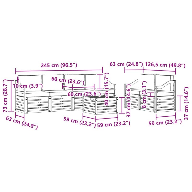 Комплектът за открито е перфектна комбинация от стил и функция, създавайки невероятен акцент за всяка градина или тераса. Със съвременния си дизайн и чисти линии, той добавя елегантност и е идеален за релаксация или социално събиране. Изработен е изцяло от масивно акациево дърво, което осигурява издръжливост и привлекателен вид, за тези, които искат не само практичност, но и стил в откритите мебели. Издръжливото акациево дърво: Направен от масивно акациево дърво, комплектът за открито се отличава с дълготрайност и устойчивост на всякакви атмосферни условия. Здравата му конструкция осигурява стабилност, докато топлият естествен цвят добавя чар на всяка градина или тераса. Устойчив на времето дизайн: С лакирана повърхност, този комплект е защитен от слънце, дъжд и времето. Полираното покритие поддържа вида и функционалността, осигурявайки дълготраен вид за твоята градина, тераса или двор. Стил и функции: Всеки детайл, от подложките до облегалките, е проектиран за стил и комфорт. Осигуряваща подкрепа, конструкцията е визуално привлекателна, идеална за разнообразни открити поводи. Гъвкавост и комфорт: Модулният дизайн ти позволява да правиш различни конфигурации, за да пасне на твоето пространство и нужди. Идеален за релаксация или забавления, комплектът лесно се адаптира, за да те направи максимално удобен. Лесна поддръжка: За да поддържаш мебелите във форма, просто ги почиствай с влажен плат и избягвай силни почистващи средства. Редовната грижа запазва добрия вид и удължава живота на мебелите.