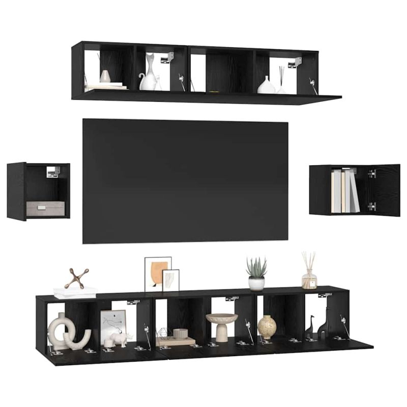 Комплект ТВ шкаф 7 pcs Черния дъб Инженерно дърво