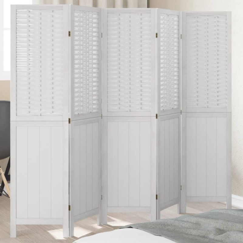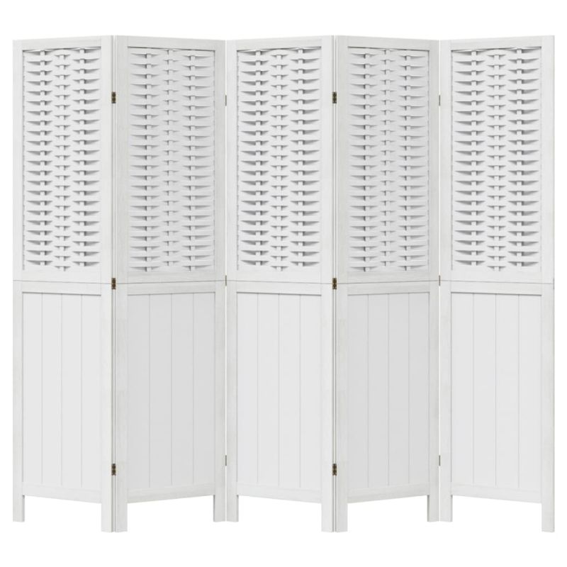 Разделител за стая, 5 панела, бял, дърво пауловния масив