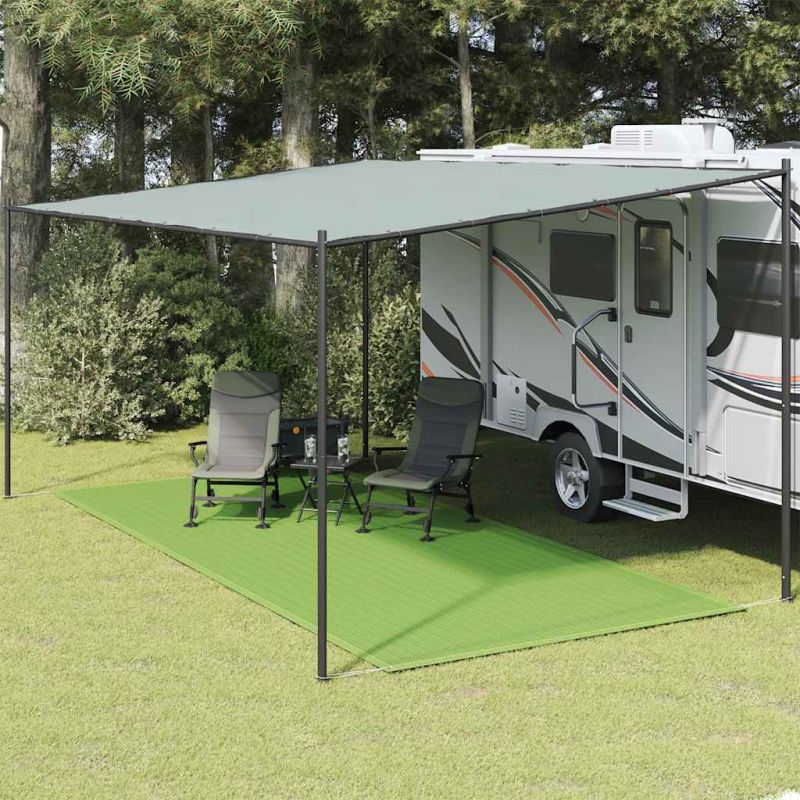 Направете вашето къмпинг пътуване по-удобно с този килим за палатка. Поставете го в палатката си, под тентата на караваната или във вътрешния си двор. Издръжлив материал: Полиетиленът с висока плътност (HDPE) осигурява силна издръжливост на повърхността и е устойчив на удари, както и на надраскване. Освен това е устойчив на ултравиолетови лъчи, което го предпазва от повреди и обезцветяване, причинени от слънцето.Практични капси: Външният килим е проектиран с интегрирани капси в четирите си ъгъла и 2 допълнителни капси в средата на дългата страна за удобно закрепване.Лесен за почистване килим: Килимът за патио лесно се поддържа чист с вода.Дизайн с възможност за рязане: Килимът за къмпинг може лесно да бъде изрязан до желания размер, когато е необходимо.