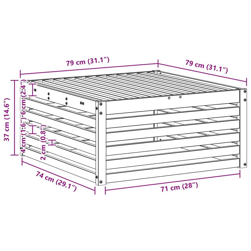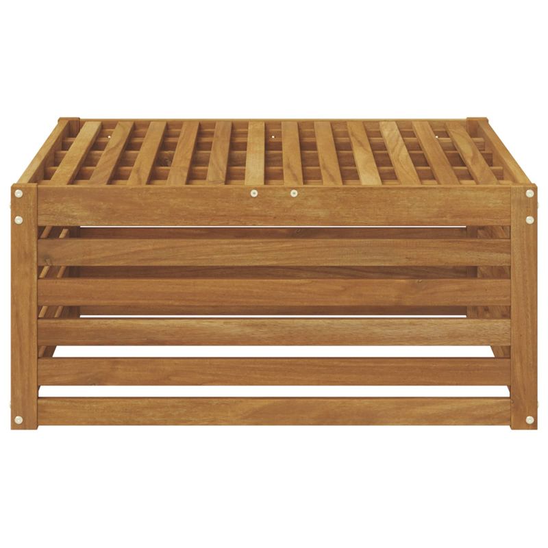Тази външна мебел се вписва без усилие в пространството на всяка градина, предлагайки модерен стил, който съчетава простота и практичност. Изработена от здраво масивно акациево дърво, чистите линии я правят отличен акцент за вашите открити пространства. Създадена да устои на лоши метеорологични условия, тази универсална мебел лесно се нагажда към различни външни настройки, като добавя визуална привлекателност на пространството. Масивна акациева дървесина: Изработен изцяло от издръжливо масивно акациево дърво, този диван предлага отлична дълговечност и устойчивост на външни условия. Естественият вид на дървото добавя елегантност, направи го стилен и практичен избор за открито. Универсален дизайн: Всеки модул е създаден с мисъл за универсалност, позволявайки му да се адаптира лесно към различни външни оформления и нужди. Гъвкавият дизайн го прави подходящ за различни обстановки и поводи. Модерен слънат дизайн: Проектиран за модерни градински и терасни пространства, слънатият дизайн подобрява въздушния поток, позволявайки на дървото да изсъхне бързо след дъжд, докато осигурява дълготрайна комфорт и издръжливост. Функционалност за външно ползване: Създаден за употреба навън, този диван устоява на променливите климатични условия, като запазва дълготрайна красота и функционалност. Идеален е за градини, патио и други външни пространства. Лесно поддържане: За да запазиш доброто му състояние, просто избърши повърхността с влажна кърпа, за да махнеш праха и мръсотията. Тази лесна поддръжка помага да се запази външния вид с времето.