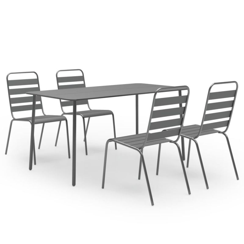 Градински трапезен комплект, 5 части, стомана, тъмносив