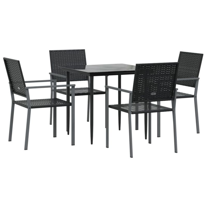 Този градински трапезен комплект, съчетаваща както стил, така и функционалност, без съмнение е предназначен да бъде акцентът на вашата градина, вътрешен двор или всяко друго жилищно пространство. Материал, устойчив на атмосферни влияния: PE ратан, известен също като полиратан, е устойчив на атмосферни влияния и лесен за почистване. Той остава красив отвън за дълъг период от време. Предлага отлично качество, удобство и естетичен вид.Здрава и стабилна рамка: Стоманените рамки правят трапезния комплект здрав и стабилен за ежедневна употреба на открито.Практичен плот: Гладкият плот на трапезната маса е изработен от закалено стъкло, което се почиства лесно с влажна кърпа. Освен това предлага отлична опора за съхранение на вашите ястия, напитки и други декоративни елементи.Удобни места за сядане: Столът за хранене е проектиран с облегалка, за да ви предложи удобно изживяване при сядане. Забележка:За да сте сигурни, че вашите външни мебели ще останат красиви, ви препоръчваме да ги защитите с водоустойчиво покривало. Максимално 110 кг на седалка.