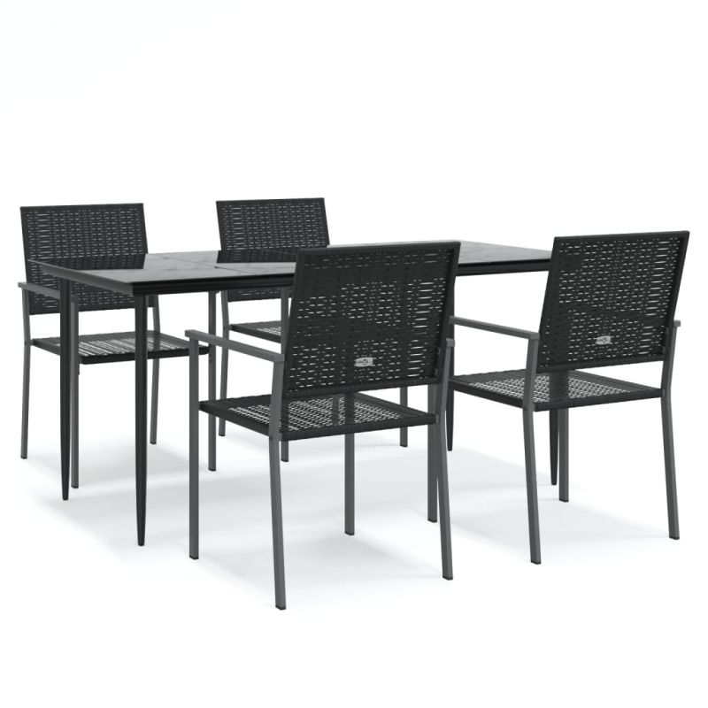 Този градински трапезен комплект, съчетаваща както стил, така и функционалност, без съмнение е предназначен да бъде акцентът на вашата градина, вътрешен двор или всяко друго жилищно пространство. Материал, устойчив на атмосферни влияния: PE ратан, известен също като полиратан, е устойчив на атмосферни влияния и лесен за почистване. Той остава красив отвън за дълъг период от време. Предлага отлично качество, удобство и естетичен вид.Здрава и стабилна рамка: Стоманените рамки правят трапезния комплект здрав и стабилен за ежедневна употреба на открито.Практичен плот: Гладкият плот на трапезната маса е изработен от закалено стъкло, което се почиства лесно с влажна кърпа. Освен това предлага отлична опора за съхранение на вашите ястия, напитки и други декоративни елементи.Удобни места за сядане: Столът за хранене е проектиран с облегалка, за да ви предложи удобно изживяване при сядане. Забележка:За да сте сигурни, че вашите външни мебели ще останат красиви, ви препоръчваме да ги защитите с водоустойчиво покривало. Максимално 110 кг на седалка.