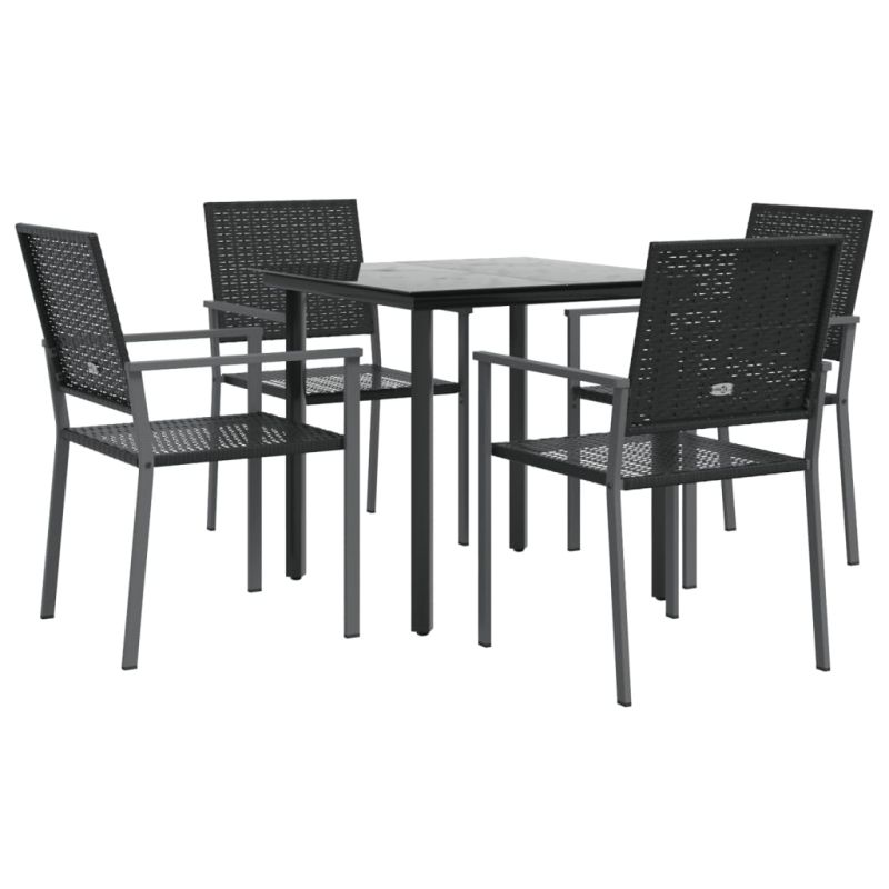 Този градински трапезен комплект, съчетаваща както стил, така и функционалност, без съмнение е предназначен да бъде акцентът на вашата градина, вътрешен двор или всяко друго жилищно пространство. Материал, устойчив на атмосферни влияния: PE ратан, известен също като полиратан, е устойчив на атмосферни влияния и лесен за почистване. Той остава красив отвън за дълъг период от време. Предлага отлично качество, удобство и естетичен вид.Здрава и стабилна рамка: Стоманените рамки правят трапезния комплект здрав и стабилен за ежедневна употреба на открито.Практичен плот: Гладкият плот на трапезната маса е изработен от закалено стъкло, което се почиства лесно с влажна кърпа. Освен това предлага отлична опора за съхранение на вашите ястия, напитки и други декоративни елементи.Удобни места за сядане: Столът за хранене е проектиран с облегалка, за да ви предложи удобно изживяване при сядане. Забележка:За да сте сигурни, че вашите външни мебели ще останат красиви, ви препоръчваме да ги защитите с водоустойчиво покривало. Максимално 110 кг на седалка.