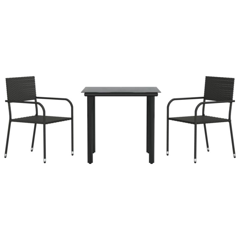 Градински трапезен комплект 3 части черен полиратан и стомана