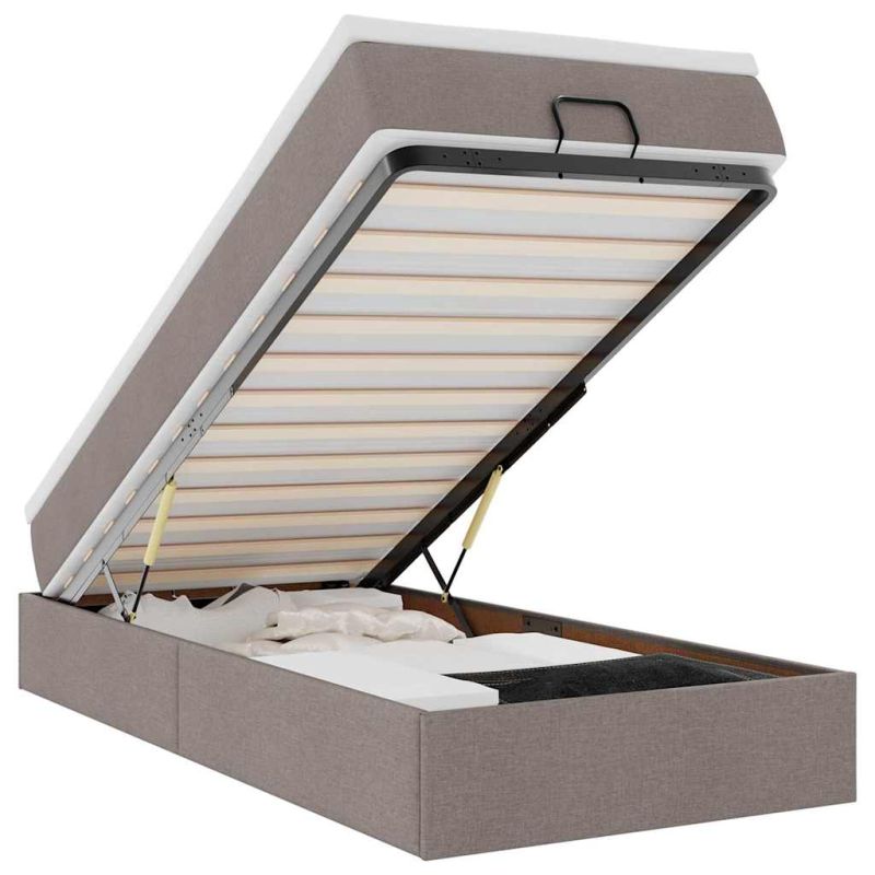 Османска легло с матрак, таупе, 100x200 см, плат