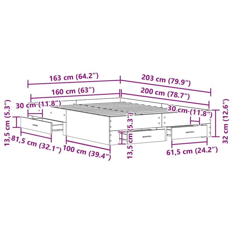 Рамка за легло с чекмедже Дъб 160 x 200 cm Инженерно дърво