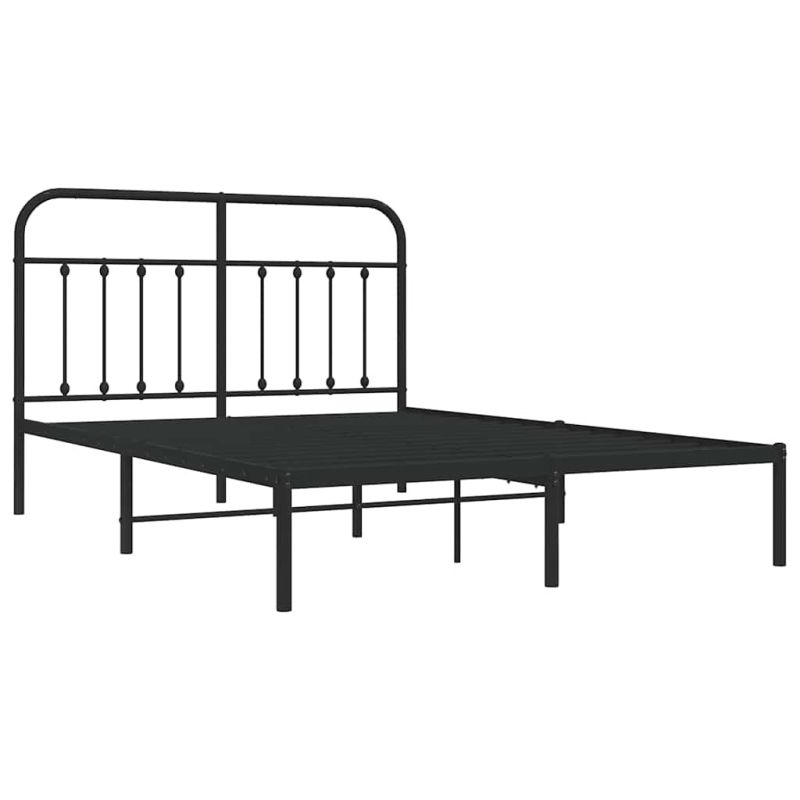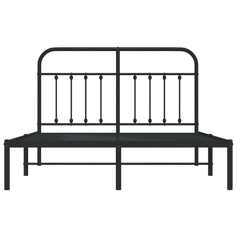 Метална рамка за легло с горна табла, черна, 150x200 см