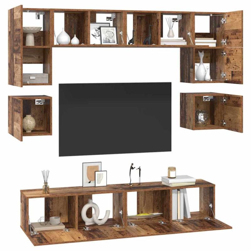 Комплект ТВ шкаф 8 pcs Старо дърво Инженерно дърво