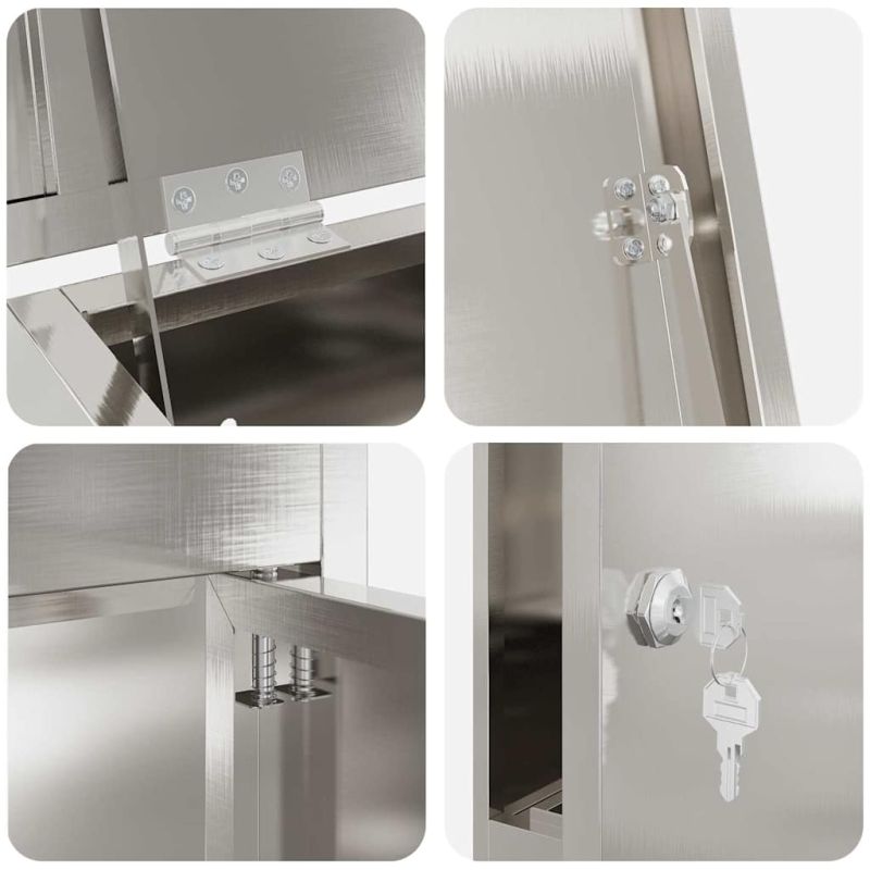 Тази кутия за поща навън е съвършен микс от модерен стил и практична функция, проектирана да подсили сигурността и улесни получаването на пратки у дома. С правоъгълната метална конструкция и модерен вид, тя предлага нов начин за съхранение на доставките ви. Поставена на терасата или в градината, тя не само осигурява безопасност, но и добавя стил на външното ви пространство. Здрава стоманена конструкция : Изработена от стомана, тази кутия е проектирана да устои на всякакви атмосферни условия, осигурявайки надеждност всяка година. Стоманата гарантира непокътнатост, дори в бурно време. Сигурни ключалки с мъртва заключалка : Богата на сигурност, с мъртва ключалка, която осигурява защита на вашите пратки. Мъртвите ключалки предлагат висока безопасност срещу неоторизиран достъп. Удобни hinged врати : Хингед вратите дават лесен достъп при оставяне и вземане на пакети. Здравата им структура осигурява гладка работа, а дръжките предлагат сигурен захват. Вградена складова площ : С достатъчно място, кутията може да съхранява пакети с различни размери. Допълнителната площ я прави идеална за сигурно съхраняване на много пакети. Лесна поддръжка : Просто избърсвайте с суха кърпа, за да премахнете праха. При лошо време, закрепете я за стена, за да увеличите дълготрайността ѝ.
