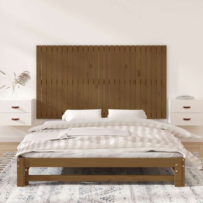 Стенна табла за спалня, меденокафява, 159,5x3x90 см, бор масив
