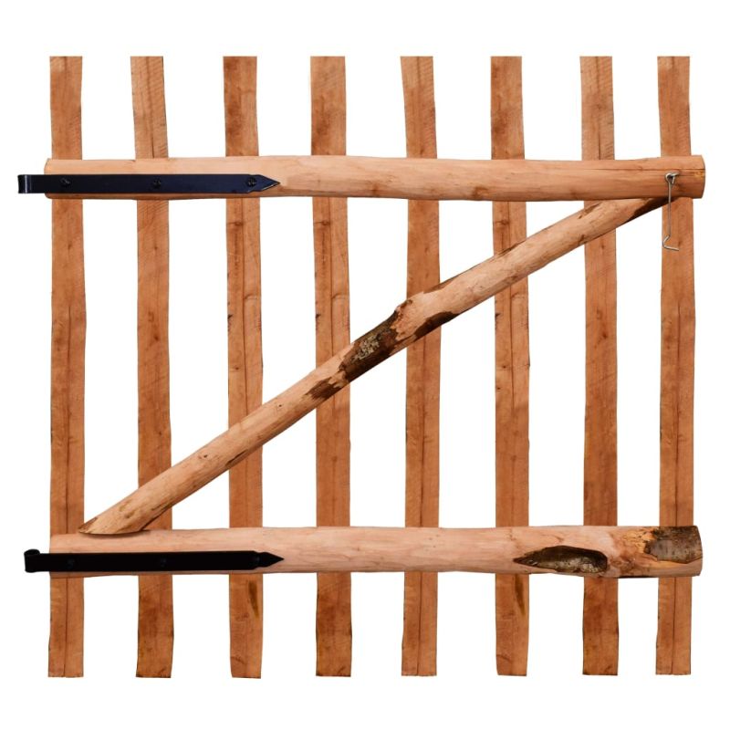 Тази дървена порта за ограда излъчва рустикален чар и ще бъде идеална входна точка за оградата около вашата градина или вътрешен двор. Тази издръжлива оградна врата е изработена от здрава импрегнирана лескова дървесина. Това импрегнирано дърво е устойчиво на гниене и има рустикален чар и ще подчертае естествения характер на всяка градина. Лешниковото дърво ще издържи на всякакви климатични условия. Здравата оградна врата е съставена от вертикални колове и хоризонтални и диагонални напречни елементи, което я прави здрава и издръжлива. Градинската порта се доставя с метални панти, винтове и кука за кабина. Сглобяването е лесно. Моля, имайте предвид, че дървото е естествен материал и може да има несъвършенства.