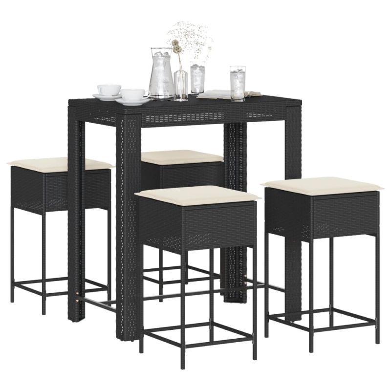 Градински бар комплект с възглавници 5 части черен полиратан