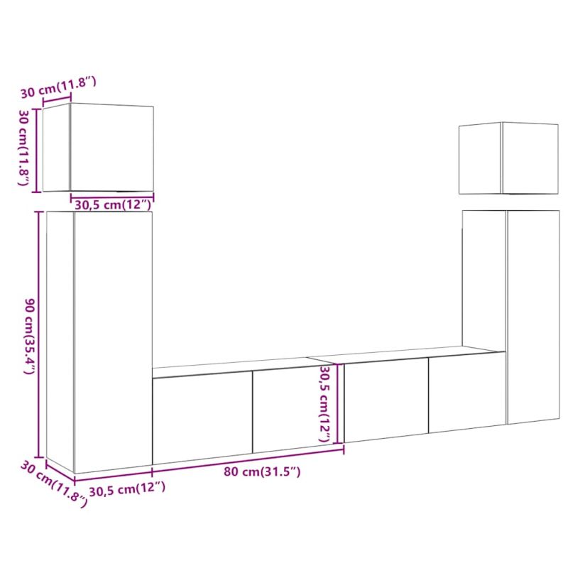 Този класически комплект ТВ шкафове е проектиран да бъде фокусна точка на вашата стая, отличаващ се с модерен, но практичен дизайн. Стабилен и издръжлив материал: Инженерната дървесина е издръжлив и стабилен материал с гладка повърхност, която е устойчива на влага, изкривяване и разцепване, което я прави надежден избор за различни проекти.Достатъчно място за съхранение: Този ТВ шкаф осигурява достатъчно място за съхранение на вашите списания, книги, DVD дискове и мултимедийни устройства добре организирани и на достъпно място.Спестяване на място: Телевизионната конзола може да се монтира на стената, за да се добави допълнително място за съхранение. По този начин можете да увеличите максимално пространството на пода и да поддържате чистота.Стабилен и здрав плот: Стабилният плот на ТВ модула е идеален за поставяне на телевизора и стереосистемата или на някои декоративни предмети като вази или саксийни растения. Добре е да се знае:Винтовете и дюбелите за вътрешната стена не са включени. Съветваме ви да намерите и използвате винтове и дюбели, подходящи специално за вашите стени. Ако не сте сигурни, можете да се консултирате с професионалист. Моля, прочетете и следвайте всяка стъпка от инструкциите.