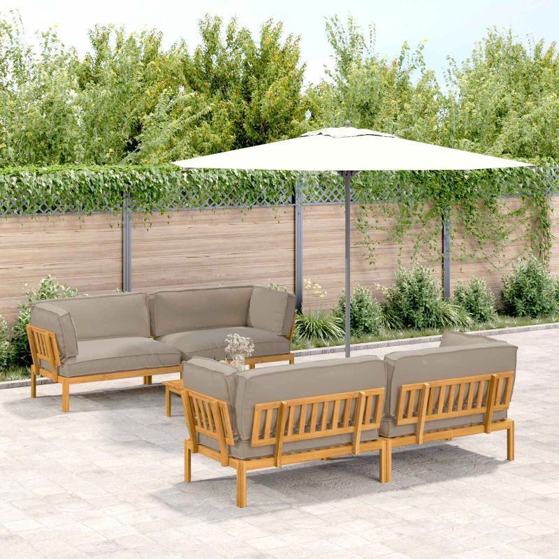 Комплект дивани Едноцветен 5 pcs Таупе Солидно акациево дърво