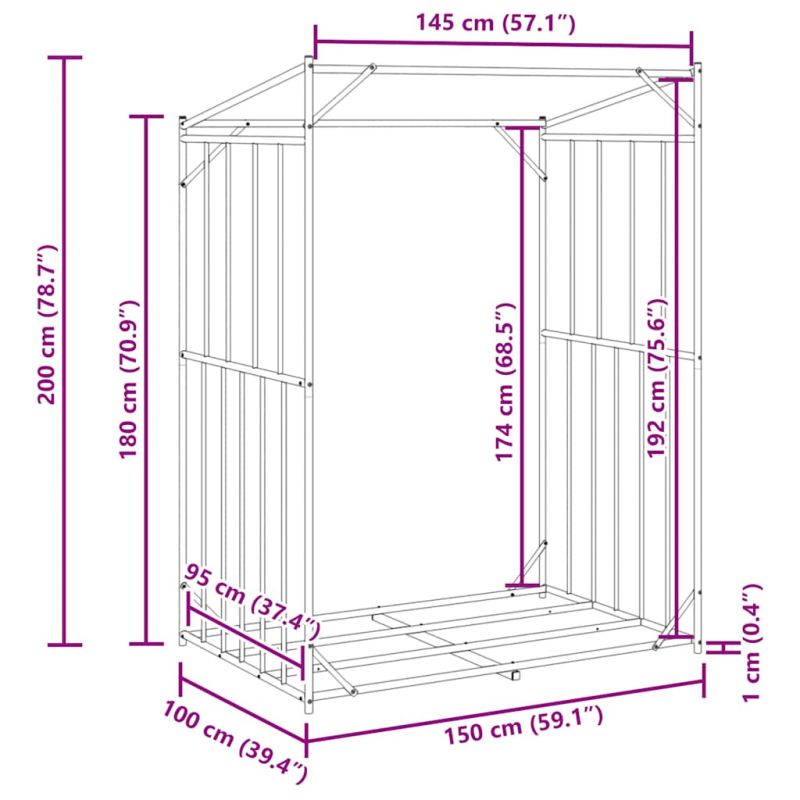 vidaxL Стойка за дърва за огрев с дъждобран, 150x100x200 см