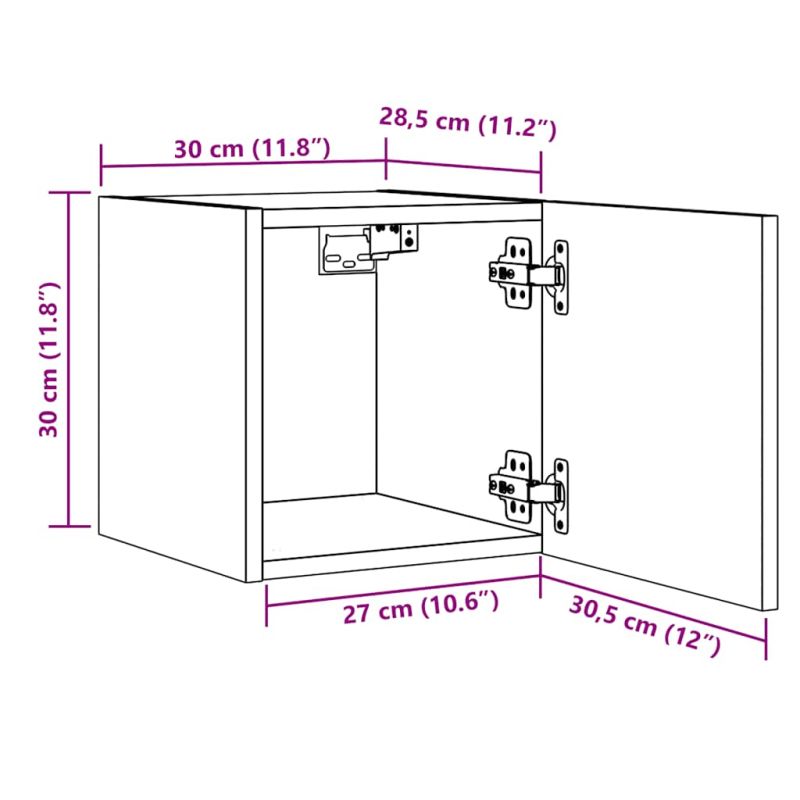 Този комплект шкафове за телевизор, монтирани на стена, се отличава с елегантен и класически дизайн, който го прави декоративно и практично допълнение към вашия интериор. Практичен материал: Инженерната дървесина е с отлично качество с гладка повърхност и също така се отличава със здравина, стабилност и устойчивост на влага.Достатъчно място за съхранение: Поставката за телевизор има две отделения, осигуряващи достатъчно място за съхранение, за да организирате предмети като мултимедиен плейър, списания и други.Дизайн за стенен монтаж: ТВ модулът не заема място на пода. Можете лесно да го закачите на стената.Многофункционален шкаф: Стабилният плот на шкафът за мултимедийни устройства е идеален за подреждане на декоративни предмети, фоторамки и саксийни растения. Може да се използва и като нощно шкафче и др.