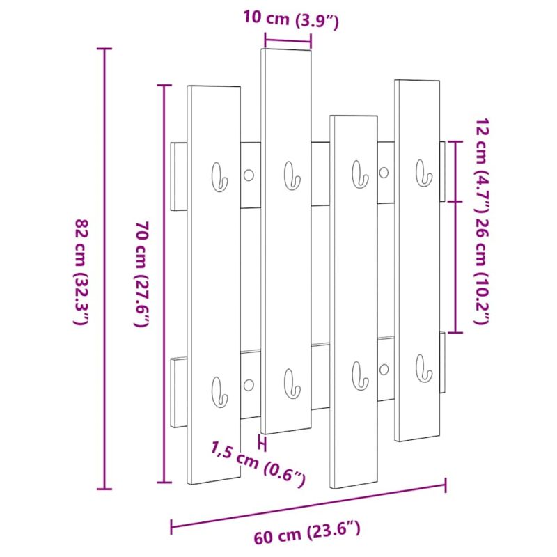 Стенен закачалка за палта Старо дърво 60 x 3 x 82 см
