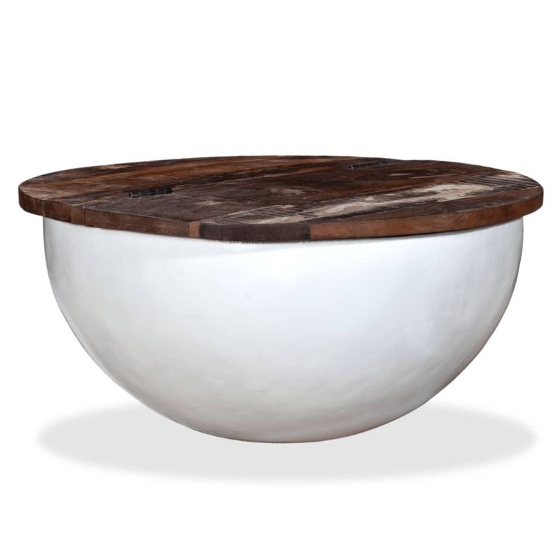 Маса за кафе, регенерирано дърво масив, бяла, форма на купа