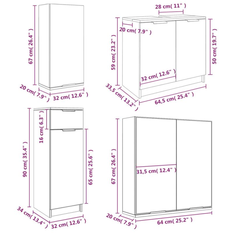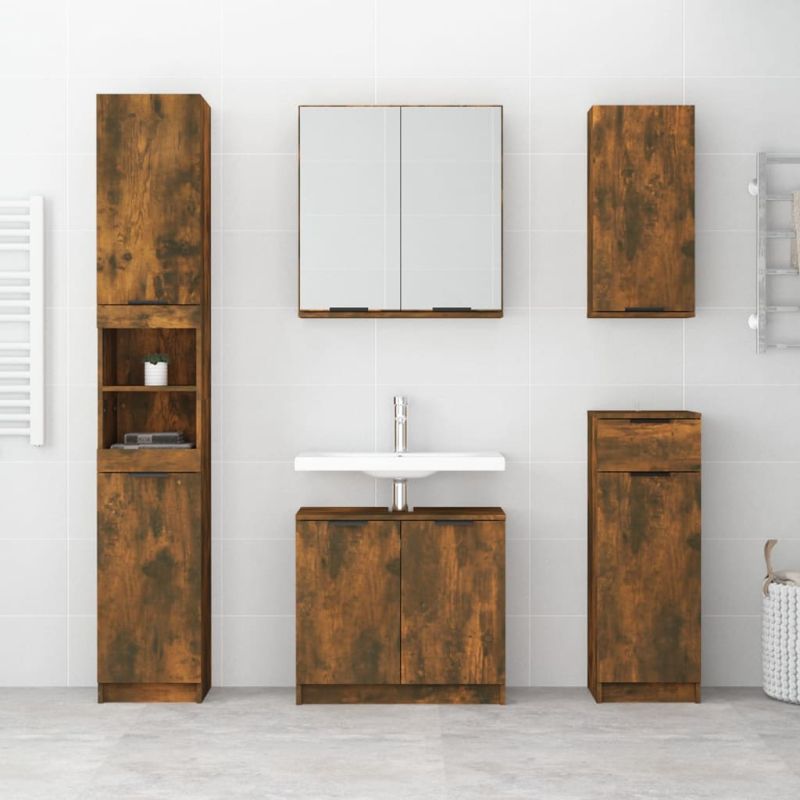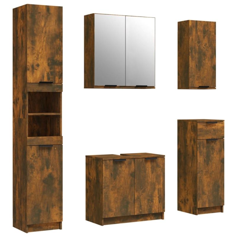 Комплект шкафове за баня от 5 части инженерно дърво Опушен дъб