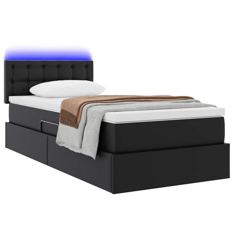 Легло с място за съхранение и LED Черно 90 x 200 cm Изкуствена