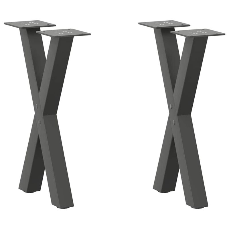 Крака за масичка за кафе, X-образни, 2 бр., антрацит, 38 x (42-43) см, стомана