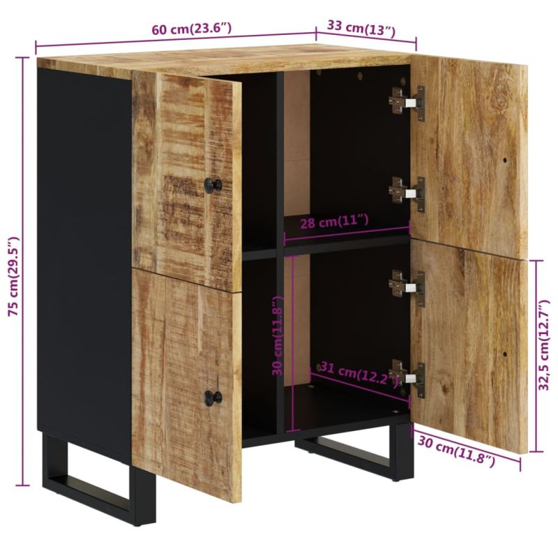 Сайдборд с 4 врати, 60x33x75 см, мангово дърво масив
