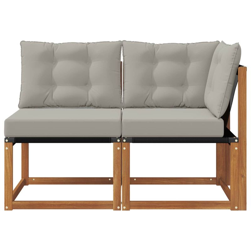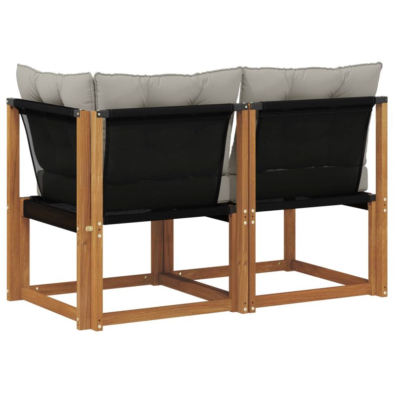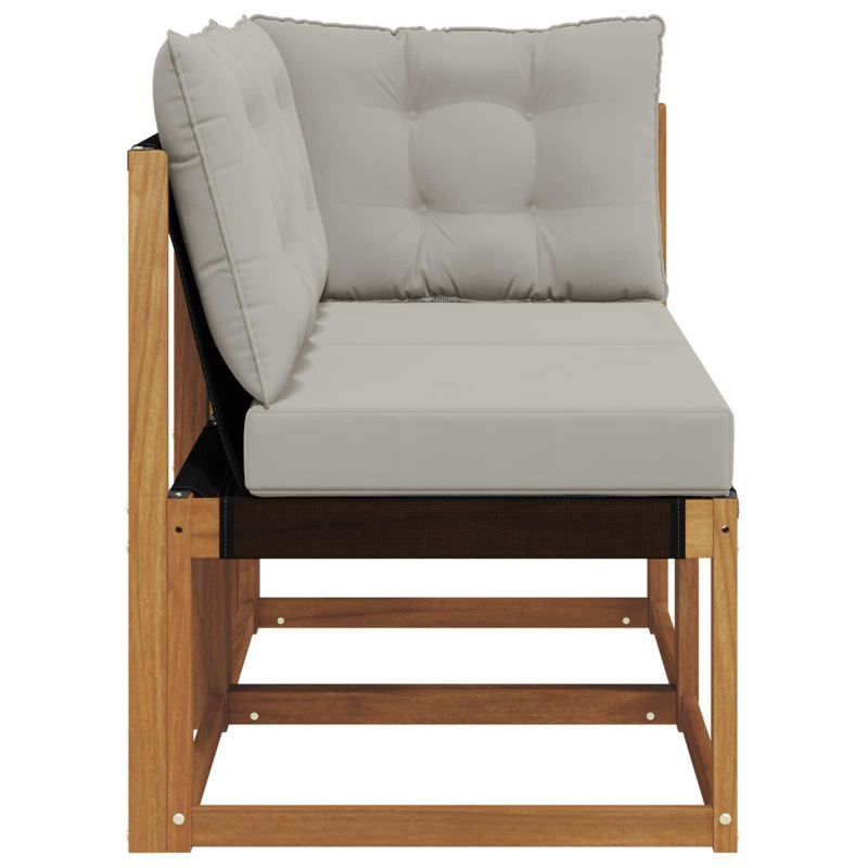 Този комплект мебели за открито е наистина уникален, преобразувайки всяка тераса, балкон или градина в модерен и комфортен кът за отдих. Идеални за почивка или за събирания на открито, те предлагат множество настройки, които пасват на всякакво пространство. С внимание към детайла, комплектът ще придаде визуална привлекателност на всяко място, осигурявайки спокойствие и елегантност. Масивна акациева дървесина: Здрав и устойчив материал за външна употреба, предлага надеждност и дългодишна употреба. Натуралният декор е перфектен за всяка градинска обстановка. Удобни възглавници: Всеки модул е с възглавници от качествен полиестер за комфорт и дълготрайност. Материята е мека и устойчива на външна употреба. Възглавниците са с лек фоам за комфорт при продължителни седящи. Модулен и гъвкав дизайн: Осигурява адаптивност за всякакви пространства и нужди. Можете да направите перфектна конфигурация, независимо дали за малко място или по-големи събирания. Устойчив на времето: Проектиран да издържа на условията навън, мебелите са устойчиви на дъжд и слънце. Дизайнът позволява бързо изсъхване, запазвайки здравината и комфорта. Устойчив на избледняване: Специалната Textilene материя запазва ярките цветове с времето, дори при пряка слънчева светлина. Тази устойчива повърхност гарантира дълготрайност, дори на открито.