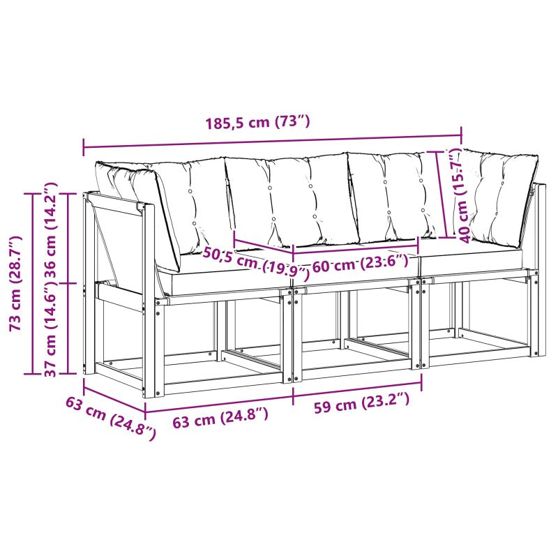 • 1 x Среден диван: 59 x 63 x 73 см (ДxШxВ)