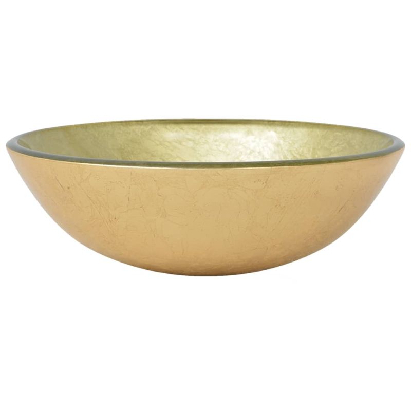 Мивка за баня с кран и сифон, златисто закалено стъкло