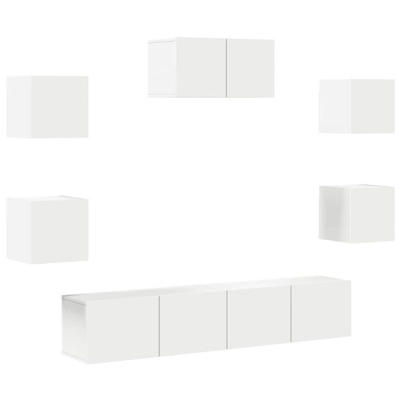 Комплект ТВ шкафове от 7 части, бял, инженерно дърво