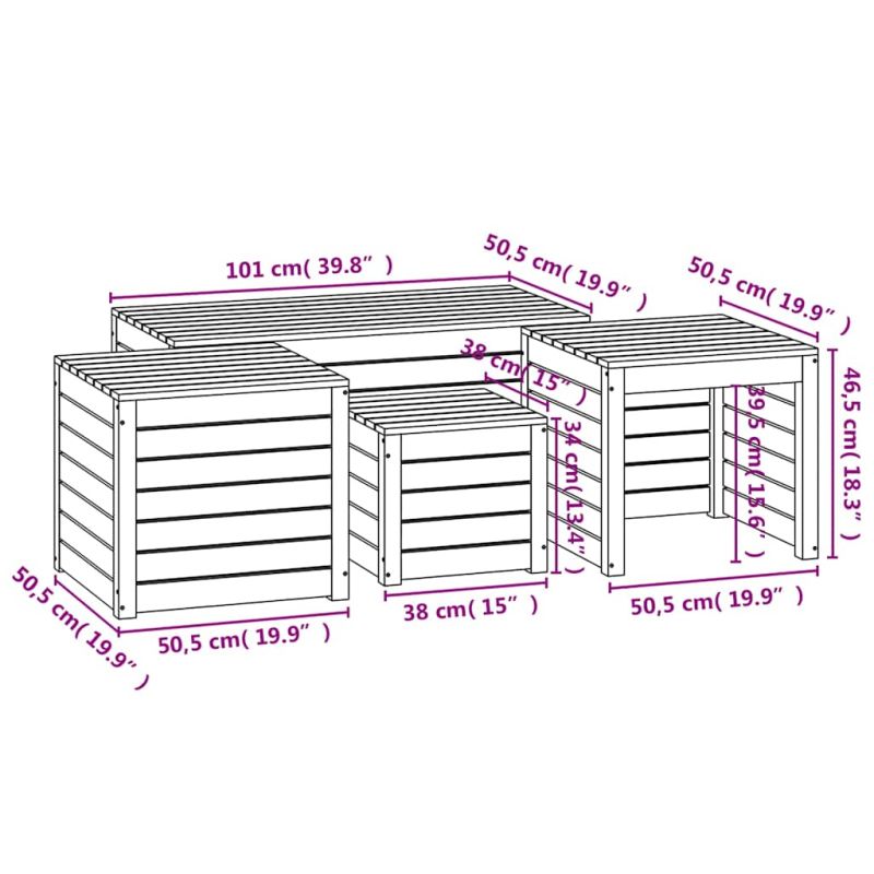 Този дървен комплект градински кутии ви дава достатъчно място за съхранение на вашите инструменти и други помощни средства. Масивна борова дървесина: Масивната борова дървесина е красив естествен материал. Боровата дървесина е с продълговати шарки, а чеповете придават на материала характерния му рустик вид. Мебелите за двор са изработени от масивна борова дървесина, което ги прави здрави и стабилни.Достатъчно място за съхранение: Градинските мебели осигуряват достатъчно място за съхранение на възглавници, детски играчки, градински инструменти и други аксесоари, като същевременно поддържат съдържанието организирано.Практичен капак: Външните кутии за съхранение се доставят с капаци, които предпазват предметите от прах и също така добавят безопасност.Разнообразна употреба: Градинските кутии за съхранение могат да се използват не само за съхранение, но и за сядане или като маси във вътрешния двор. Забележка:За да сте сигурни, че вашите външни мебели ще останат красиви, ви препоръчваме да ги защитите с водоустойчиво покривало. Максимално 110 кг на седалка.