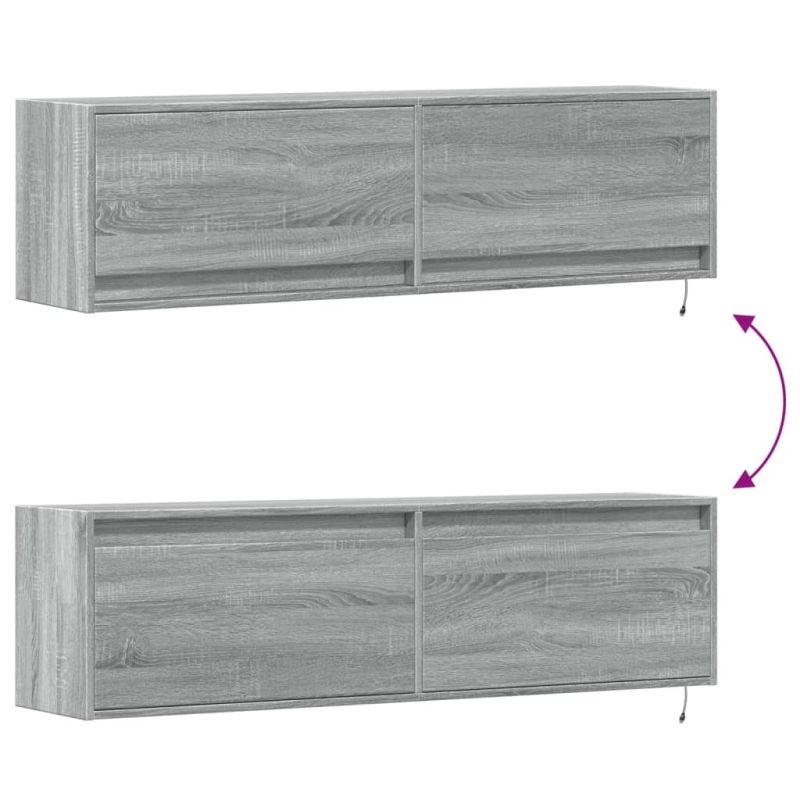 Стенен ТВ шкаф с LED осветление, сив сонома, 140x31x38 см