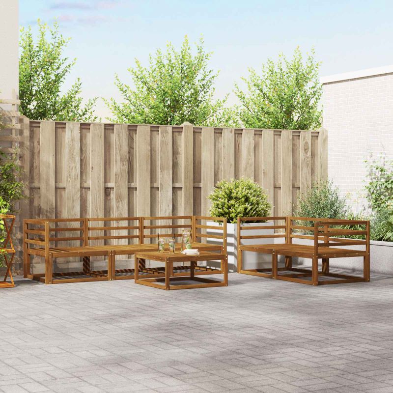 Този модерен комплект открит ъглов диван е точно това, от което се нуждаете, за да направите вашата градина, патио или край басейн централно място. Със своя стилен дизайн и удачно съчетание на удоволствие и функция, кафявите му тонове и скрития гръб придават лукс на откритите пространства, създавайки перфектна зона за сядане за всякакви събития или тихи моменти. Независимо дали е под чадър или на слънце, този комплект ще преобрази всяка среда със своето безвремие, канейки всеки да се отпусне и да се наслади на удоволствието от откритото. Масивна акациева дървесина: Направен от първокласна масивна акациева дървесина, този комплект дивани излъчва естествена красота и здравина. С доказаната си устойчивост и красиви зърна, акациевата дървесина е идеална за открито, тъй като е устойчива на атмосферни условия и ежедневна употреба. Природната лъскавина на дървесината добавя елегантност и не изисква много поддръжка, което я прави сладък избор за всеки стилен дом. Слатен гръб: С елегантен слатен гръб, този комплект дивани комбинира красота и удобство. Този дизайн позволява циркулация на въздуха и придава по-освежаващо усещане на вашето пространство. Поддържащата облегалка предлага комфорт, а красивия вид създава уютна атмосфера на открито, перфектна за развлечения или релакс. Фиксирана слатена рамка: Здравата и фиксирана слатена рамка осигурява стабилност и надеждност, които ще ви служат години напред. Този дизайн е перфектен за открито, където е нужна здрава опора. Конструкцията на рамката допълва стила на дивана, създавайки единно визуално излъчване, което акцентира на здравината и съвременния вид. Устойчив на времето: Проектиран да издържа на теста на времето, този комплект е направен да понася различни метеорологични условия. От слънчеви следобеди около басейна до ветровити вечери в градината, материалите и дизайнът осигуряват допълнителна защита, така че диванът да остане удобен и привлекателен през целия сезон. Модулна конфигурация: Модулният дизайн на комплета ви позволява да настроите подредбата по ваш вкус, в зависимост от настроението или повода. Можете лесно да създадете интимна обстановка или да разширите местата за сядане. Тази гъвкавост осигурява комфорт и позволява адаптация към нуждите на вашия начин на живот, добавяйки стил и функционалност.