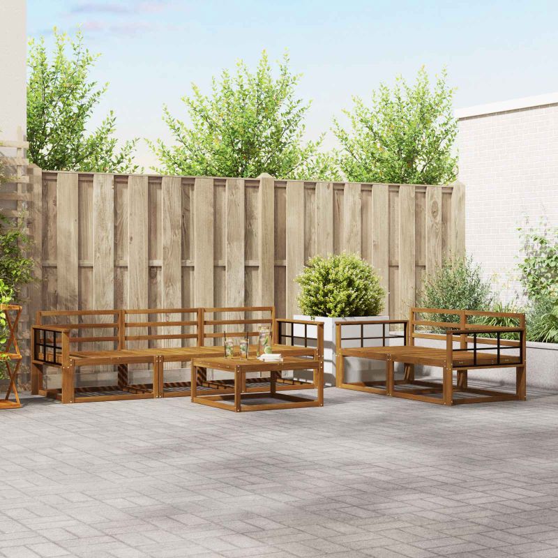 Този модерен комплект открит ъглов диван е точно това, от което се нуждаете, за да направите вашата градина, патио или край басейн централно място. Със своя стилен дизайн и удачно съчетание на удоволствие и функция, кафявите му тонове и скрития гръб придават лукс на откритите пространства, създавайки перфектна зона за сядане за всякакви събития или тихи моменти. Независимо дали е под чадър или на слънце, този комплект ще преобрази всяка среда със своето безвремие, канейки всеки да се отпусне и да се наслади на удоволствието от откритото. Масивна акациева дървесина: Направен от първокласна масивна акациева дървесина, този комплект дивани излъчва естествена красота и здравина. С доказаната си устойчивост и красиви зърна, акациевата дървесина е идеална за открито, тъй като е устойчива на атмосферни условия и ежедневна употреба. Природната лъскавина на дървесината добавя елегантност и не изисква много поддръжка, което я прави сладък избор за всеки стилен дом. Слатен гръб: С елегантен слатен гръб, този комплект дивани комбинира красота и удобство. Този дизайн позволява циркулация на въздуха и придава по-освежаващо усещане на вашето пространство. Поддържащата облегалка предлага комфорт, а красивия вид създава уютна атмосфера на открито, перфектна за развлечения или релакс. Фиксирана слатена рамка: Здравата и фиксирана слатена рамка осигурява стабилност и надеждност, които ще ви служат години напред. Този дизайн е перфектен за открито, където е нужна здрава опора. Конструкцията на рамката допълва стила на дивана, създавайки единно визуално излъчване, което акцентира на здравината и съвременния вид. Устойчив на времето: Проектиран да издържа на теста на времето, този комплект е направен да понася различни метеорологични условия. От слънчеви следобеди около басейна до ветровити вечери в градината, материалите и дизайнът осигуряват допълнителна защита, така че диванът да остане удобен и привлекателен през целия сезон. Модулна конфигурация: Модулният дизайн на комплета ви позволява да настроите подредбата по ваш вкус, в зависимост от настроението или повода. Можете лесно да създадете интимна обстановка или да разширите местата за сядане. Тази гъвкавост осигурява комфорт и позволява адаптация към нуждите на вашия начин на живот, добавяйки стил и функционалност.