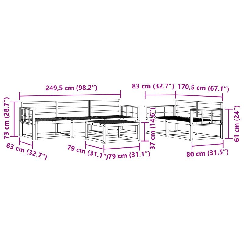 • 5 x Среден диван: 79 x 83 x 73 см (Д x Ш x В)