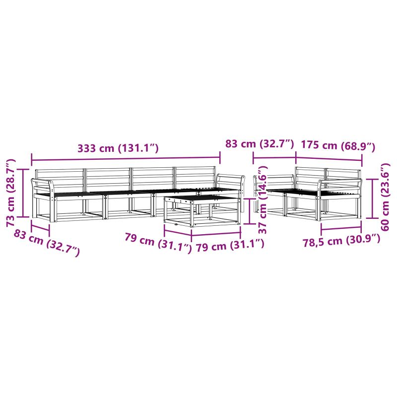 Този комплект за външно секционно канапе преобразява всяка градина или тераса в приятно място за релаксация. С модерен стил, той лесно се вписва в откритите пространства. Приветливият решетъчен дизайн позволява на въздуха да преминава, създавайки уютна атмосфера за разговори под слънцето или вечеринки под звездите. Масивна акациева дървесина: Комплектът е изграден от масивна акациева дървесина, устойчива на времето и с дълготрайна красота. Топлите оттенъци придават стил и надеждност, които отлично украсяват всяко открито пространство. Структура и дизайн: С красиво проектиран решетъчен гръб и здрава рамка, комплектът съчетава елегантност и здравина. Ръцете, облегалките и седалките са от масивна акациева дървесина, предлагайки устойчив вид и комфорт. Модулна функционалност: Лесно променяйте подредбите благодарение на иновативния модулен дизайн. Всяка част е с поддържаща облегалка и решетъчен дизайн, добавящи комфорт и стил. Препоръчва се за външен монтаж: Идеален за градини, тераси и около басейни, комплектът предлага спокойствие и дълговечност, правейки го отличен избор за всеки, който иска да се наслади на времето навън. Поддръжка: За да поддържате комплекта в отлично състояние, избягвайте пряка слънчева светлина и използвайте покривало, когато не е в употреба. Избърсвайте редовно с влажна кърпа, за да запазите вида му и да осигурите дълъг живот.