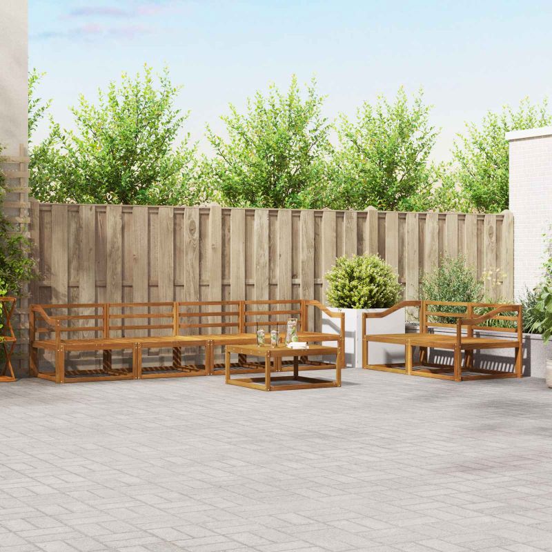 Този комплект за външно секционно канапе преобразява всяка градина или тераса в приятно място за релаксация. С модерен стил, той лесно се вписва в откритите пространства. Приветливият решетъчен дизайн позволява на въздуха да преминава, създавайки уютна атмосфера за разговори под слънцето или вечеринки под звездите. Масивна акациева дървесина: Комплектът е изграден от масивна акациева дървесина, устойчива на времето и с дълготрайна красота. Топлите оттенъци придават стил и надеждност, които отлично украсяват всяко открито пространство. Структура и дизайн: С красиво проектиран решетъчен гръб и здрава рамка, комплектът съчетава елегантност и здравина. Ръцете, облегалките и седалките са от масивна акациева дървесина, предлагайки устойчив вид и комфорт. Модулна функционалност: Лесно променяйте подредбите благодарение на иновативния модулен дизайн. Всяка част е с поддържаща облегалка и решетъчен дизайн, добавящи комфорт и стил. Препоръчва се за външен монтаж: Идеален за градини, тераси и около басейни, комплектът предлага спокойствие и дълговечност, правейки го отличен избор за всеки, който иска да се наслади на времето навън. Поддръжка: За да поддържате комплекта в отлично състояние, избягвайте пряка слънчева светлина и използвайте покривало, когато не е в употреба. Избърсвайте редовно с влажна кърпа, за да запазите вида му и да осигурите дълъг живот.
